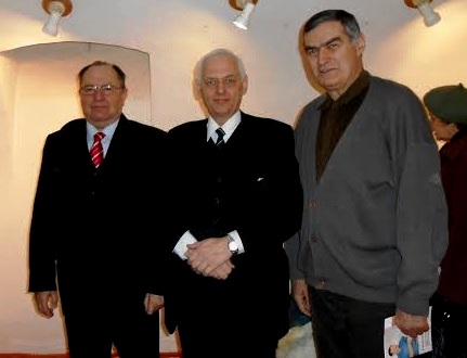 A képen Porkoláb Lajos, a berettyóújfalui Nadányi Zoltán Művelődési Központ egykori igazgatója, dr. Fleisz János, a Biharmegyei és Nagyváradi Civil Szervezetek Szövetsége (BINCISZ) elnöke és Kapy István, Nagyvárad egykori alpolgármestere, a Magyar Kultúra Napja Nagyváradon és Berettyóújfaluban való közös megszervezésének ötletgazdái, kezdeményezői és elindítói. A kép 2016. január 22-én, a közös indulás éppen 15-éves jubileumán készült az idei Magyar Kultúra Ünnepe rendezvénysorozat keretében a Tibor Ernő Galériában létrejött közös eseményen. (Fotó Fleisz Judit).