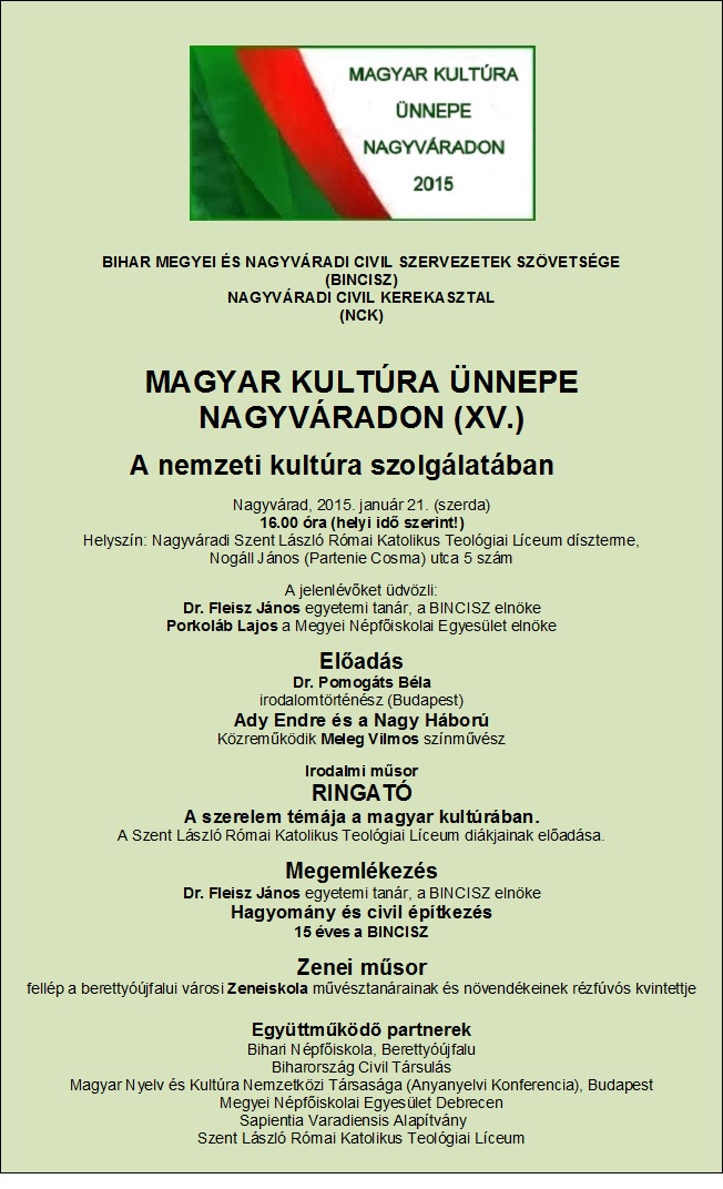 MAGYAR KULTÚRA ÜNNEPE NAGYVÁRADON 2015